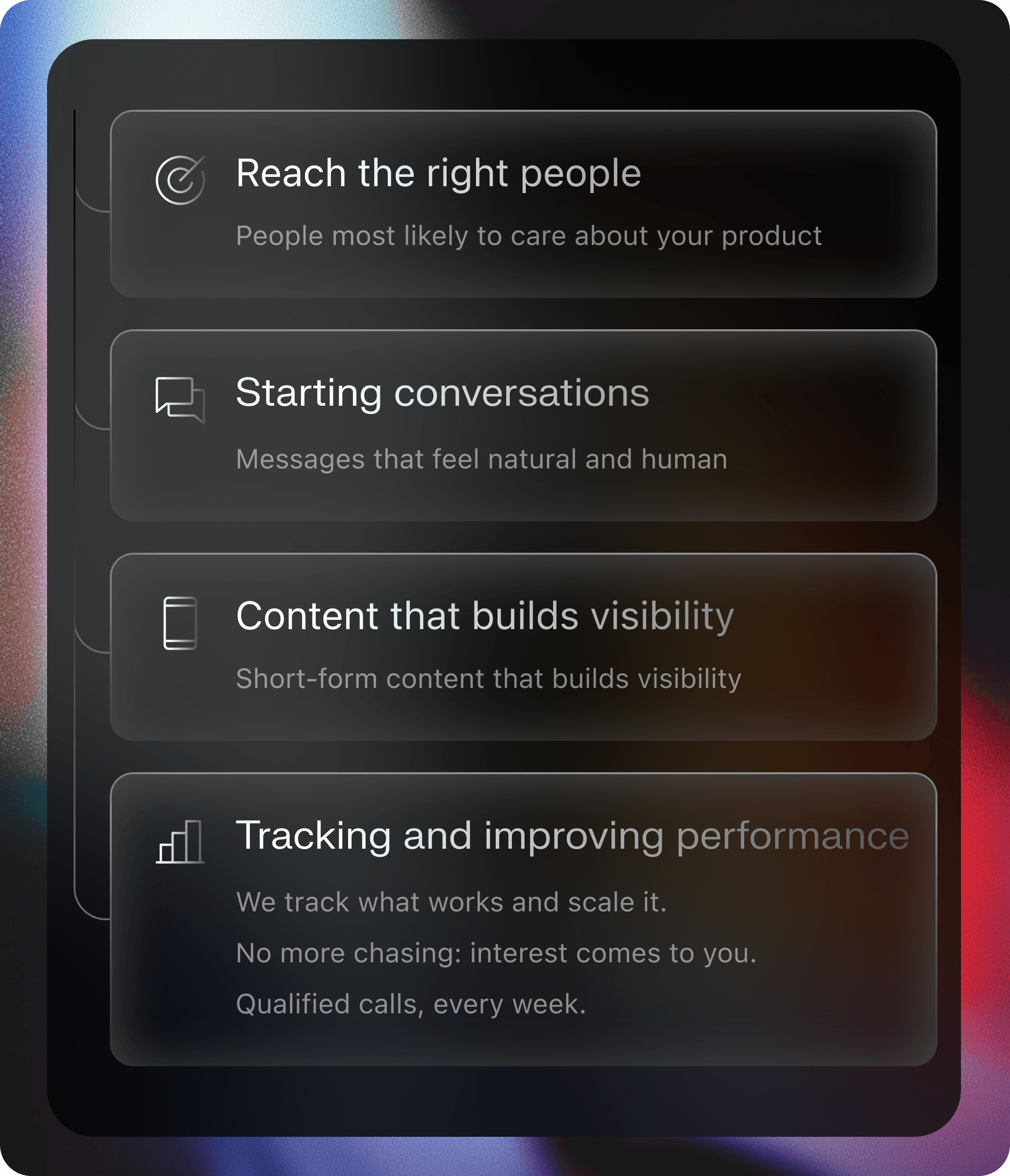 We run your distribution end-to-end, driving visibility, trust, and inbound leads via B2B conversations and viral organic content.